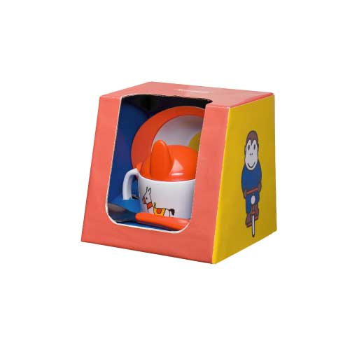 Circus baby set 3-pieces (Dick Bruna) by Mepal with mug with spout, melamine feeder bowl and baby spoon in carton gift packaging.