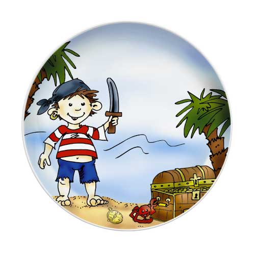 Pirate Paddy child's plate porcelain (Mirjam Müller) by Auerhahn. Size: diameter 19,5 cm.Auerhahn ch..
