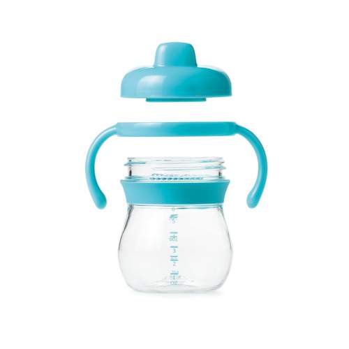 OXO Tot sippy cup Transitions with handles in colour aqua blue.