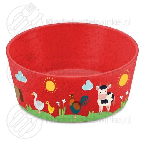 Bio-circulair Connect schaaltje in de kleur organic red met Farm (boerderijdieren) opdruk.