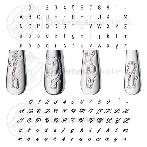 Safari kinderservies set porselein rvs 6-delig van WMF met kinderbord en schaaltje van porselein en kinderbestekset van hoogglans Cromargan roestvrij 18/10 edelstaal met reliëffiguren. WMF kinderset met safarithema met tijger, giraffe, zebra en krokodil als decor op het servies en als ingestanste figuren op het bestek. Gratis graveren van vork, mes, lepel en dessertlepel (alle bestekdelen) aan voorzijde of achterzijde is mogelijk.