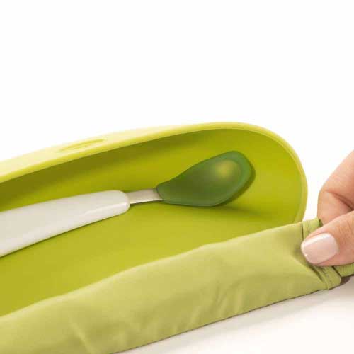 Voedingslepel reisset groen van OXO Tot in blisterverpakking met voedingslepeltje met zachte, gekleu..