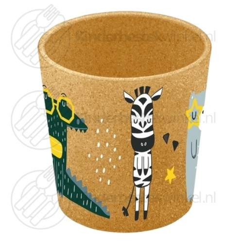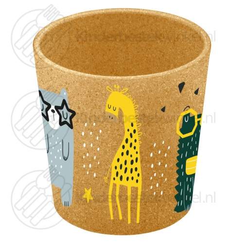 Bio-circulaire Koziol kinderbeker in de kleur natural wood met Zoo kleuropdruk.